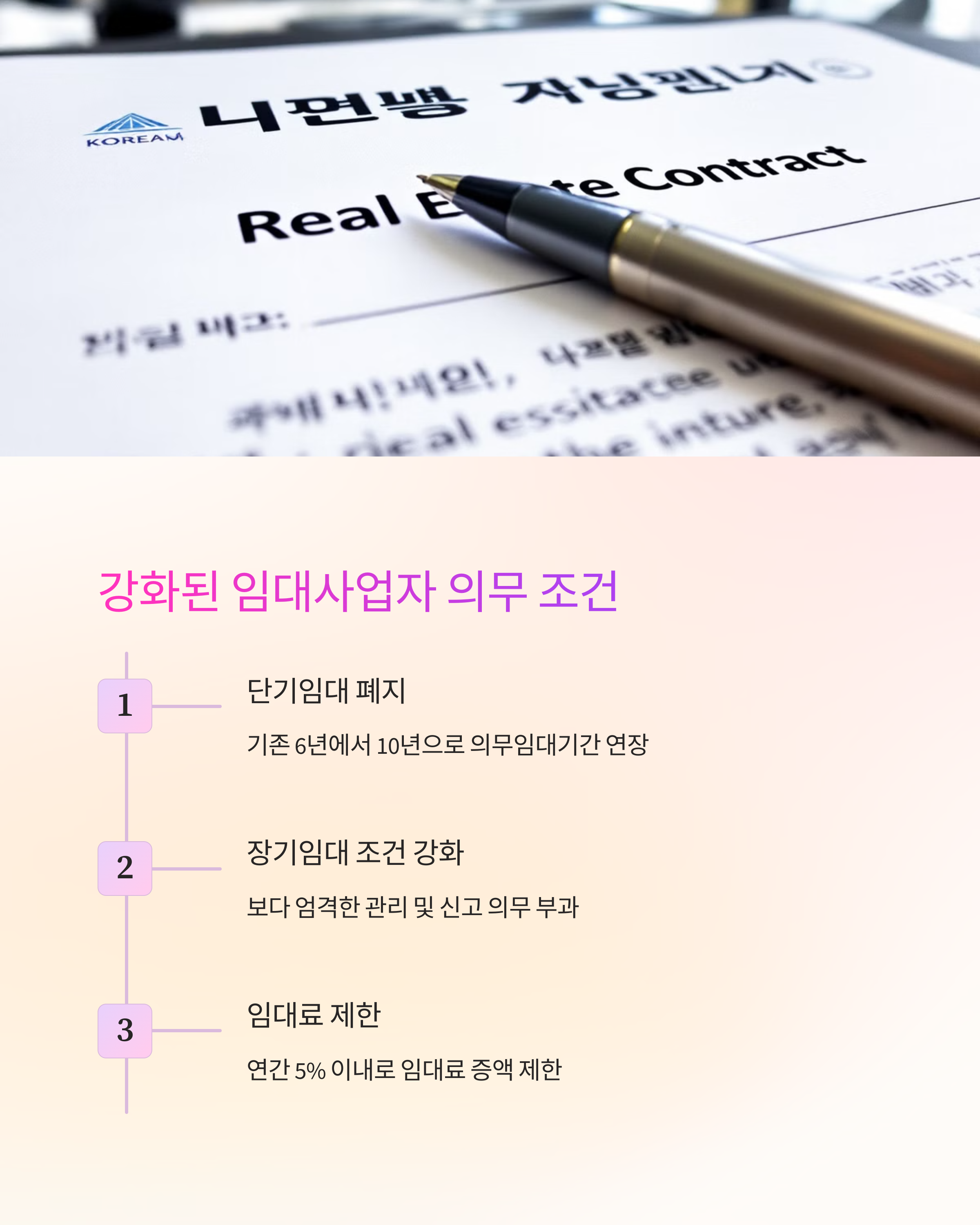 | 양도세 중과, 종부세 합산 배제 등 일부 유지 | 등록 조건, 기간, 지역별 정책 미리 확인 필요 | 단기임대 폐지, 장기임대 조건 강화 |