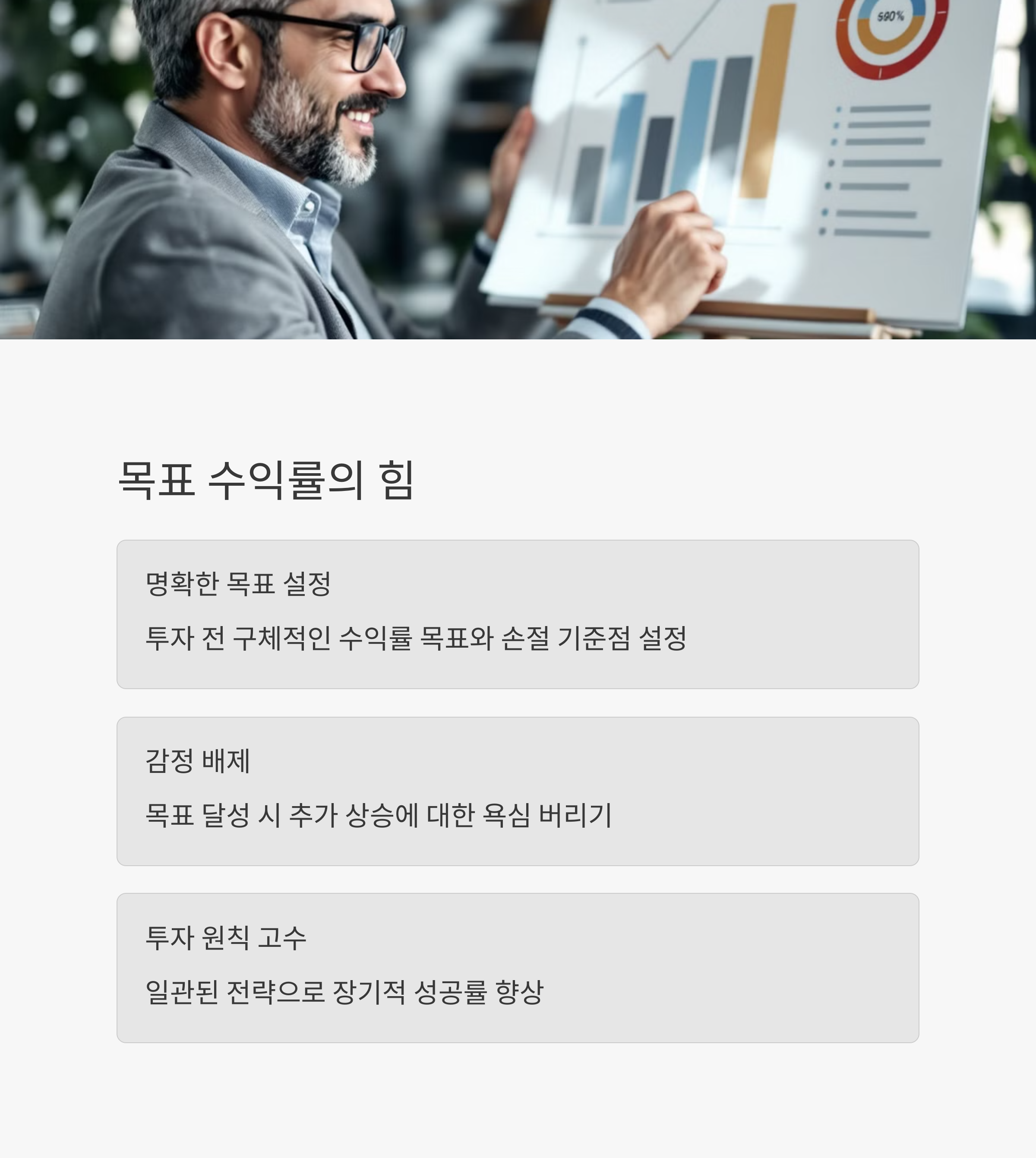 | 수익 목표 달성 후 자동 매도 | 금리·정책·경제 흐름 분석 | 유동성 확보로 다음 기회 준비 |