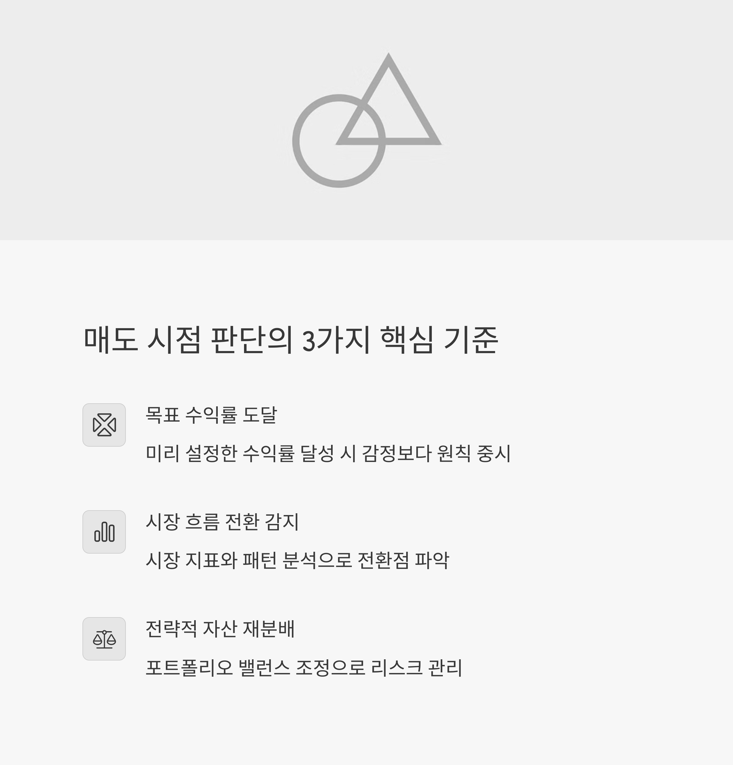 | 감정 배제한 시스템 매도 | 하락장 전 일부 현금화 | 포트폴리오 리밸런싱 실행 |