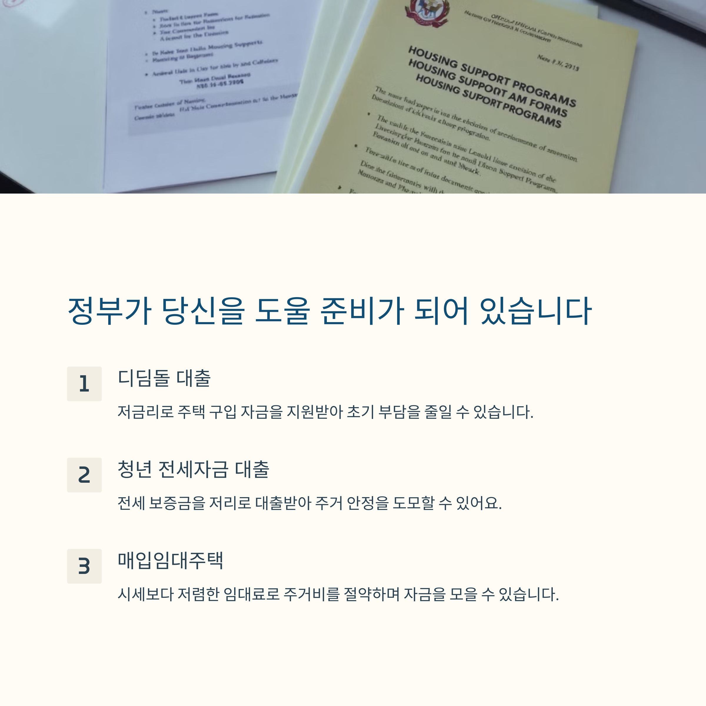 | 내 집 마련 방법 | 정부지원 + 소형주택 + 맞춤형 대출 활용 |