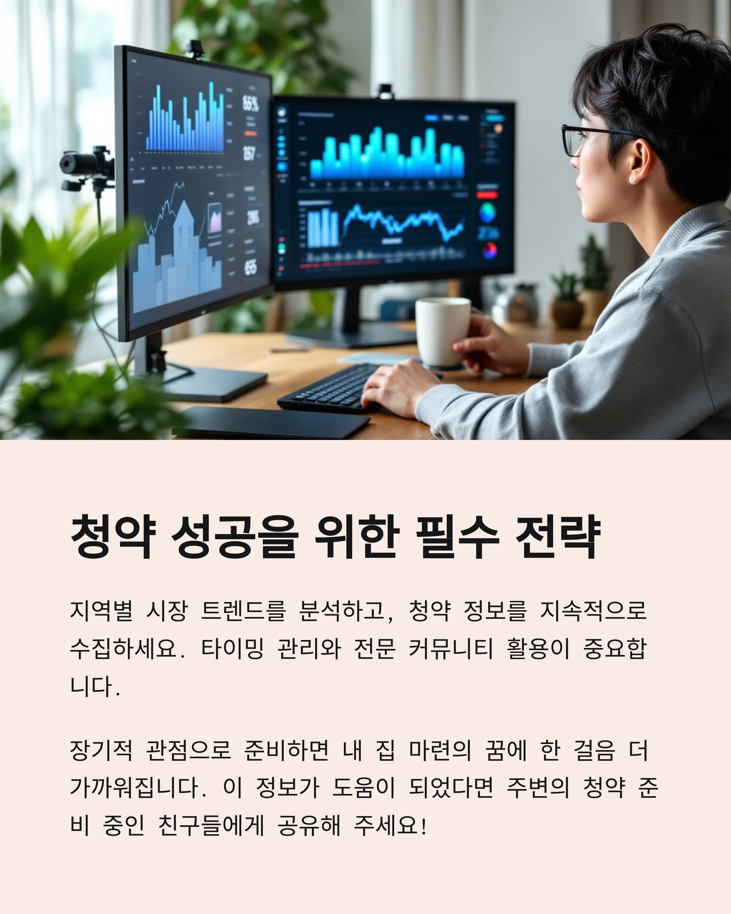 청약은 단순한 '운'이 아니라 전략이 필요합니다. 본인의 자격 조건을 명확히 파악하고, 가점 관리와 지역 분석, 제도 이해를 바탕으로 맞춤 전략을 세우는 것이 당첨 확률을 높이는 지름길입니다. 경쟁만 바라보지 말고, 장기적인 주거 계획과 자산 전략까지 고려하는 것이 가장 합리적인 청약 접근입니다.