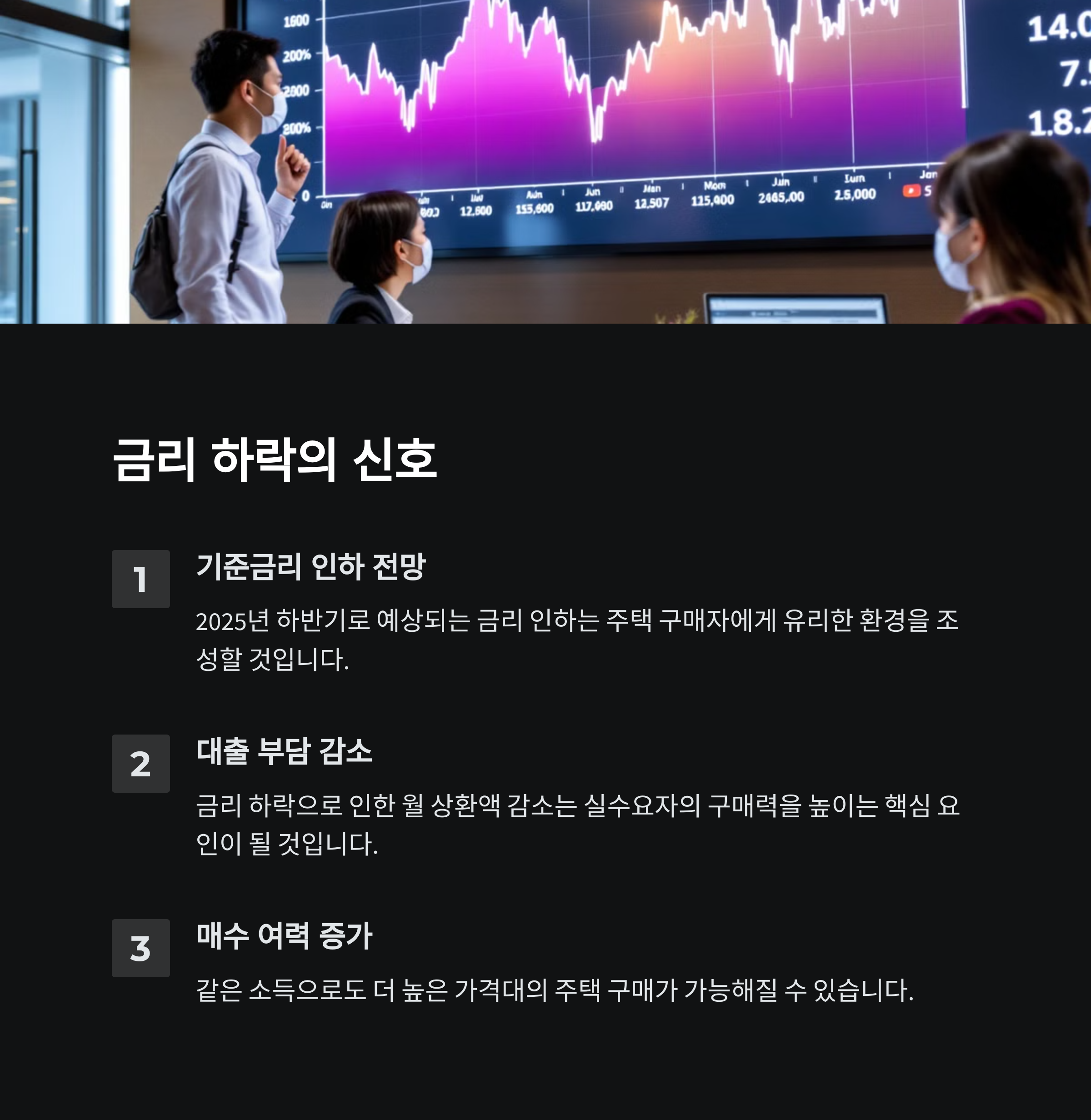 | 금리 하락 시 매수 심리 회복 가능성 | 공급 증가와 수요 흐름의 변화 예측 | 인기 지역의 흐름과 향후 가치 분석 |