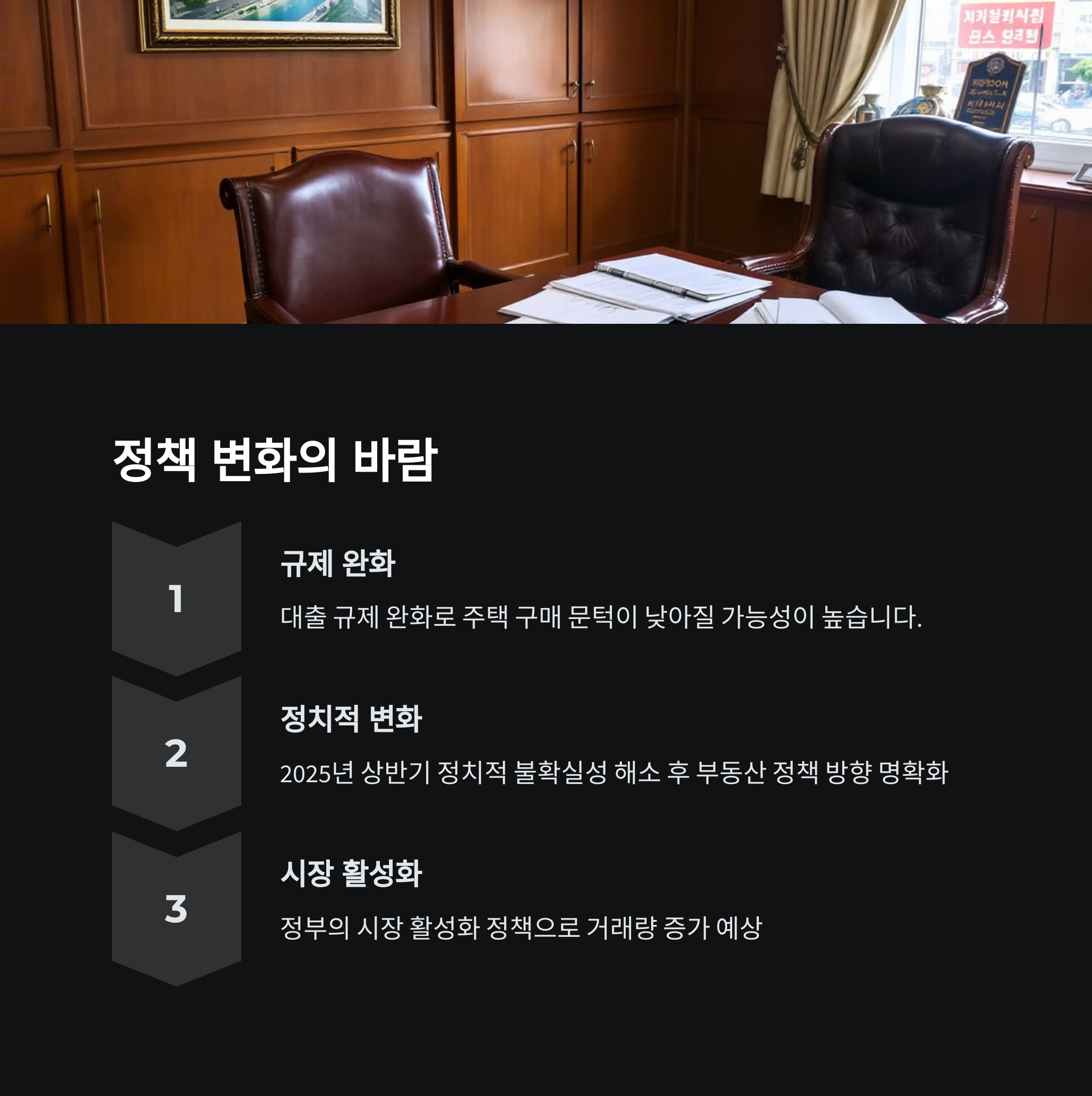 | 2025년 시장 전망 | 정책과 금리 변수로 인한 전환점 가능성 |